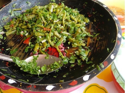 Fresh vegetables are the base of an immense number of dishes, many of them in sauces made with tomatoes or tomatillo, with the spark of dozens of varieties of chili peppers. The most traditional food for a celebration is called “mole”, a blend of several dry peppers and spice used as an ever-present sauce for turkey or chicken, served with rice, or used to fill “tamales”, the universal food of indigenous people in Latin America.